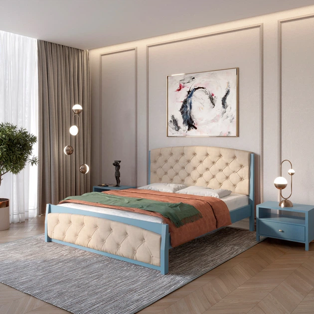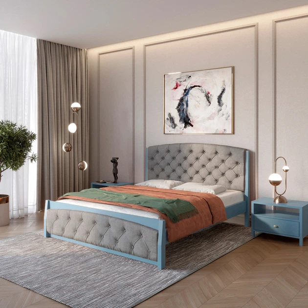 Односпальне дерев'яне ліжко Mebigrand Мехіко Сіро-синій (S7010R90B)/Аляска 23 (Бежевий) 90х200 см (MBG-12073)