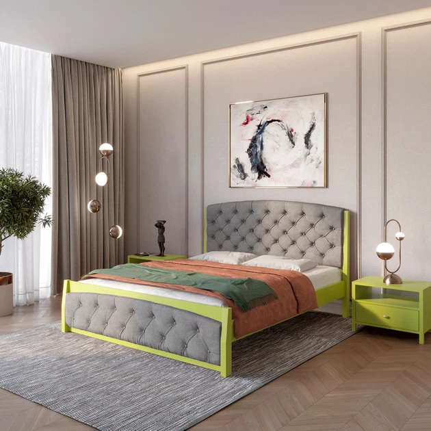 Односпальне дерев'яне ліжко Mebigrand Мехіко Лайм (S3050G70Y)/Аляска 93 (Сірий) 90х200 см (MBG-12348)