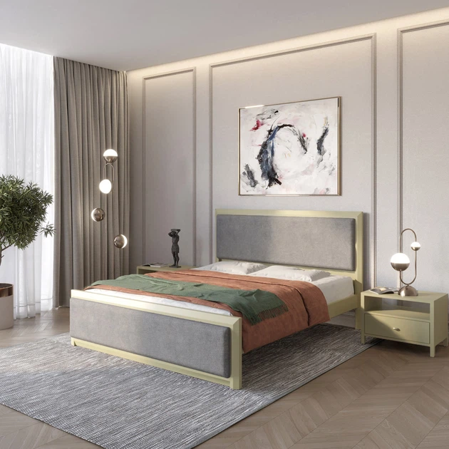 Двоспальне дерев'яне ліжко Mebigrand Барселона Б5 Оливковий (RAL1020)/Аляска 93 (Сірий) 180х190 см (MBG-14194)