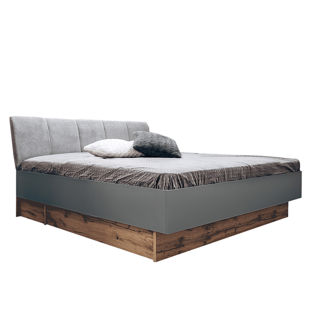 Ліжко двоспальне ТМ МІРОМАРК Лінц 180x200 з шухлядами ЛДСП/тканина Bonn 90 Сірий шифер/Дуб один/Сірий з каркасом без матраца