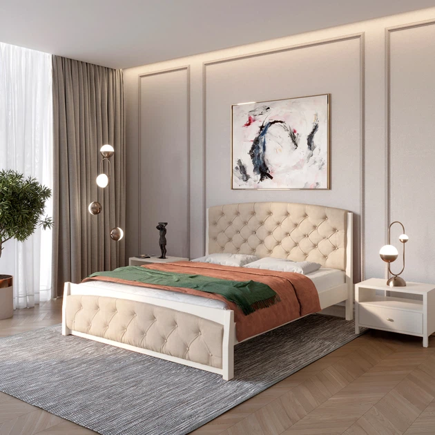 Односпальне дерев'яне ліжко Mebigrand Мехіко Білий (RAL9003)/Аляска 23 (Бежевий) 90х200 см (MBG-12025)