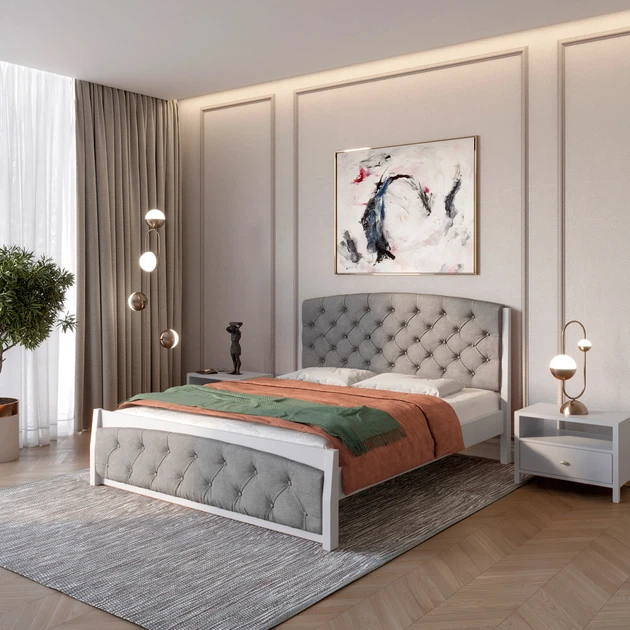 Односпальне дерев'яне ліжко Mebigrand Мехіко Білий (RAL9003)/Аляска 93 (Сірий) 90х200 см (MBG-12252)