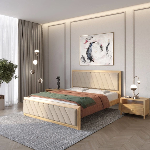 Двоспальне дерев'яне ліжко Mebigrand Барселона Б5 Вільха/Аляска 23 (Бежевий) 160х190 см (MBG-13052)