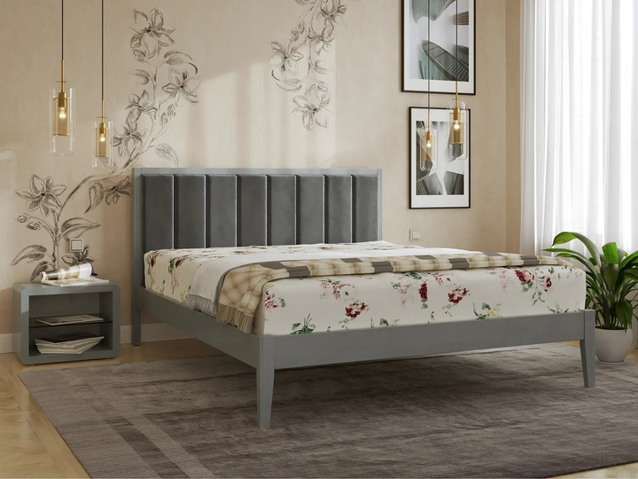 Ліжко двоспальне з натурального дерева/текстилю сосна 180х200 Грація Преміум Арбор Дерев Сірий