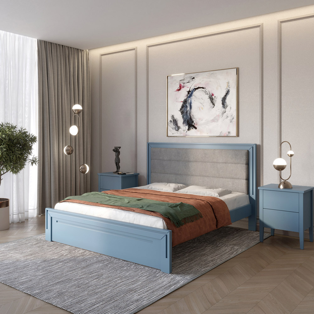 Полуторне дерев'яне ліжко Mebigrand Торонто Т5 Сіро-синій (S7010R90B)/Аляска 93 (сірий) 120х200 см (MBG-9088)