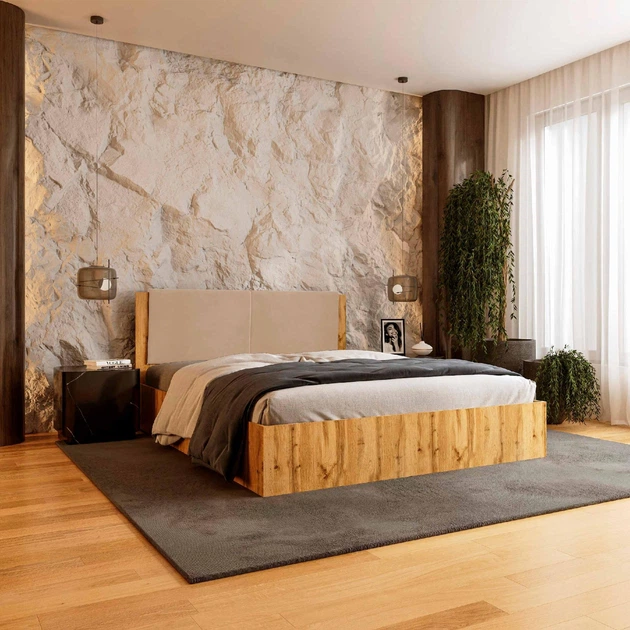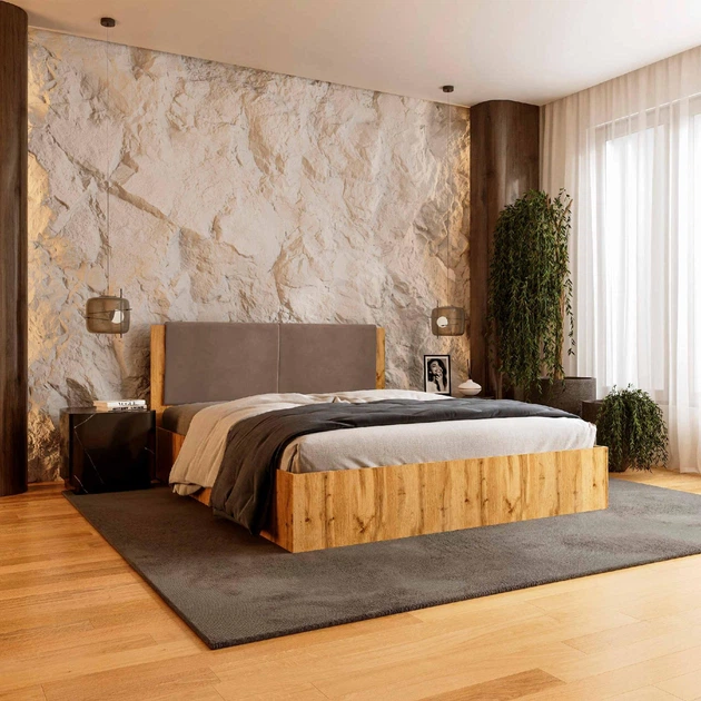 Двоспальне дерев'яне ліжко Mebigrand Чикаго Сіті Горіх світлий 180х190 см (MBG-9942)
