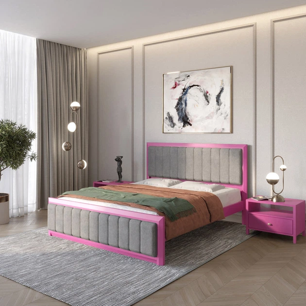 Односпальне дерев'яне ліжко Mebigrand Барселона Б1 Рожевий (S2060R30B)/Аляска 93 (Сірий) 90х200 см (MBG-11918)