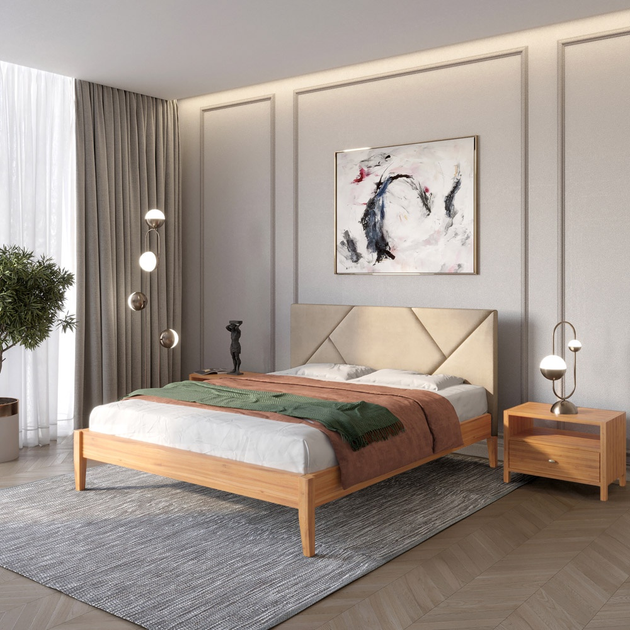 Двоспальне дерев'яне ліжко Mebigrand Нью-Йорк ДК Горіх лісовий/Аляска 23 (Бежевий) 180х200 см (MBG-10246)