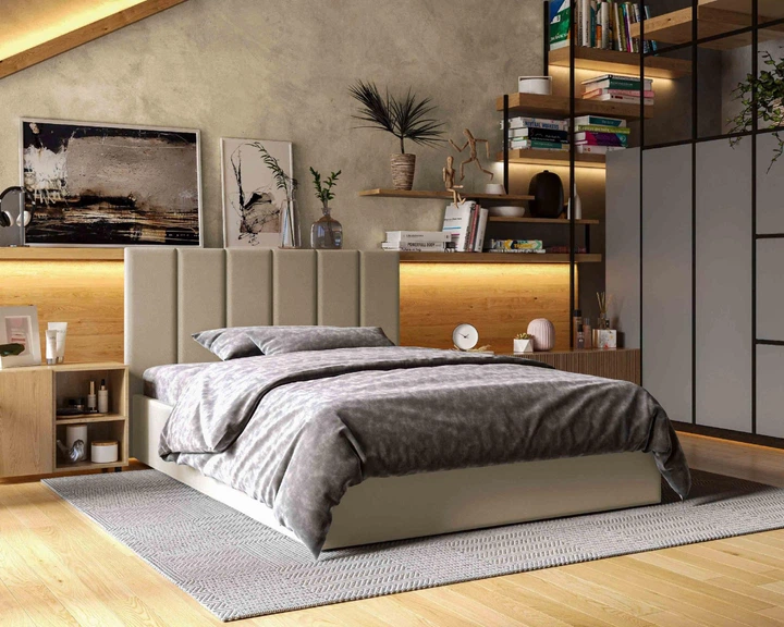 Ліжко двоспальне з підйомним механізмом Line 160x200 Viorina-Deko (без матраца) BEIGE