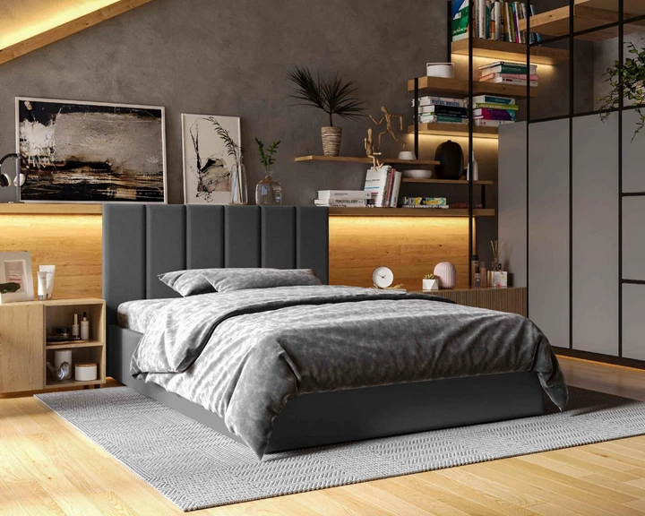 Ліжко двоспальне з підйомним механізмом Line 160x200 Viorina-Deko (без матраца) DARK GREY