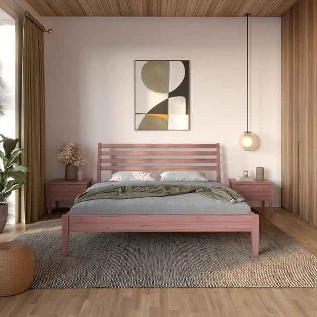 Односпальне ліжко дерев'яне Палермо плюс 80х220 Розова емаль RAL 3015 Крок ламелів 2,5 см.