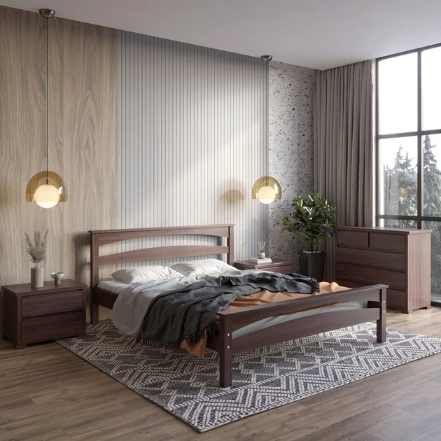 Двоспальне дерев'яне ліжко Mebigrand Чикаго Сіті Горіх темний 160х200 см (MBG-9947)