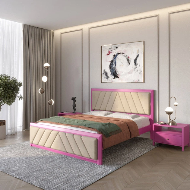 Односпальне дерев'яне ліжко Mebigrand Барселона Б6 Рожевий (S2060R30B)/Аляска 23 (Бежевий) 90х200 см (MBG-13407)