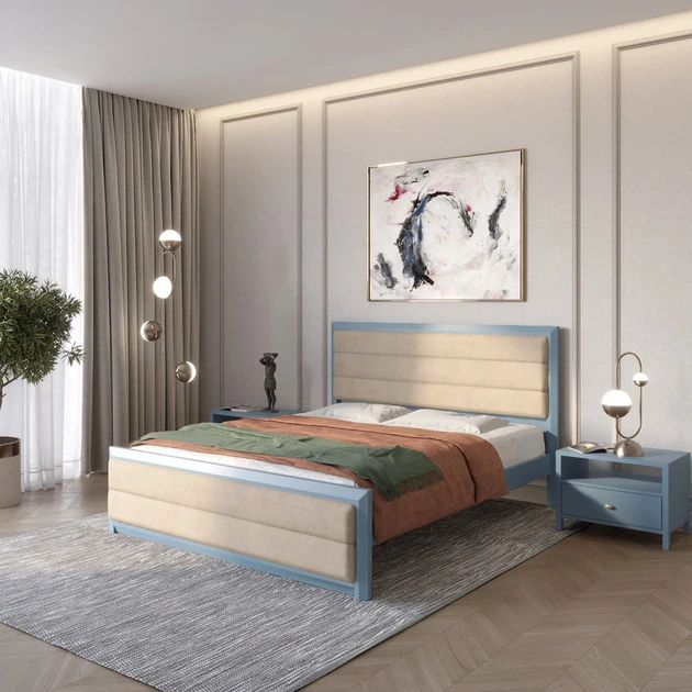 Односпальне дерев'яне ліжко Mebigrand Барселона Б5 Сіро-синій (S7010R90B)/Аляска 23 (Бежевий) 90х200 см (MBG-13215)