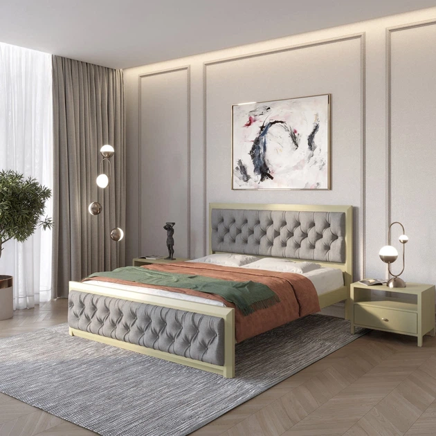 Односпальне дерев'яне ліжко Mebigrand Барселона Б6 Лайм (S3050G70Y)/Аляска 23 (Бежевий) 90х200 см (MBG-13419)