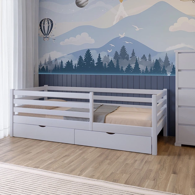 Ліжко дерев'яне з ящиками Атланта літл MebiGrand 90х200 см Білий