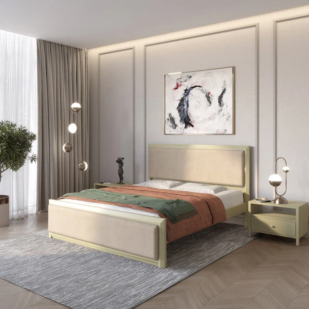 Односпальне дерев'яне ліжко Mebigrand Барселона Б4 Оливковий (RAL1020)/Аляска 23 (Бежевий) 90х200 см (MBG-12891)