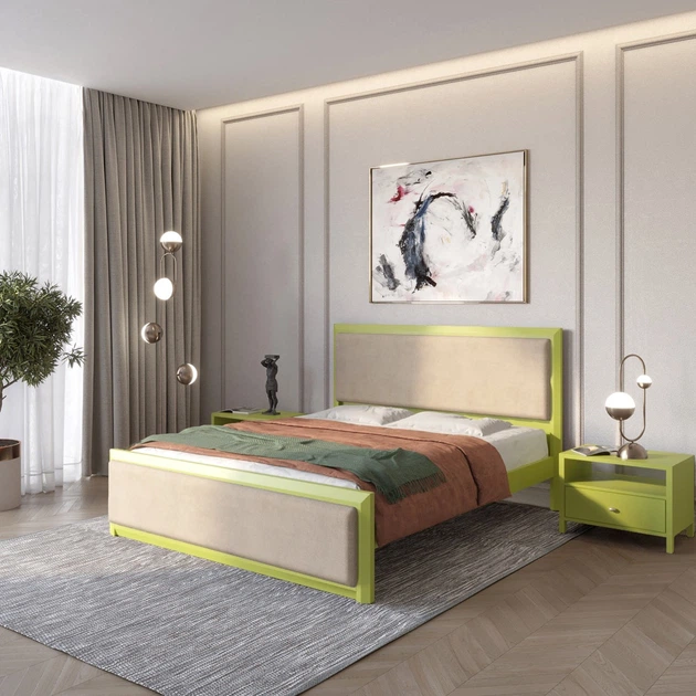 Односпальне дерев'яне ліжко Mebigrand Барселона Б2 Лайм (S3050G70Y)/Аляска 23 (Бежевий) 90х200 см (MBG-12555)