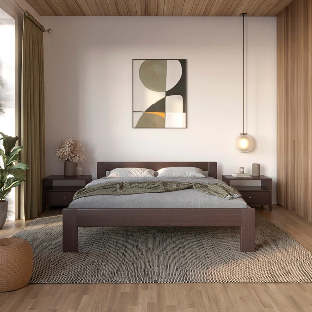 Двоспальне Ліжко з дерева сосна 120*190 Престиж Еко MECANO колір Темний горіх 2RЭMK12