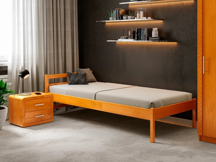 Ліжко односпальне 90х200 з основою без матраца натуральне дерево бук Соня Арбор Дерево Темний горіх