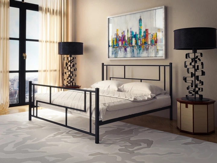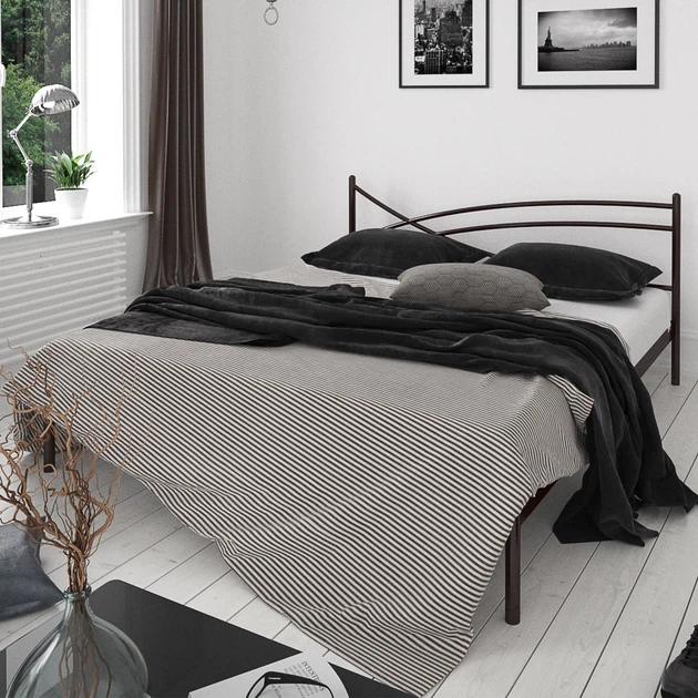 Ліжко полуторне 120х190 Кассандра TM METAL-DESIGN Чорний бархат (метал/букові ламелі)