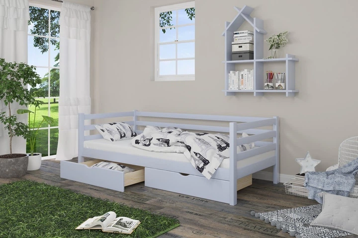 Дитяче ліжко Скандинавія Літл-2 MebiGrand з ящиками Білий + Сіро-блакитний S2010R80B 90х200