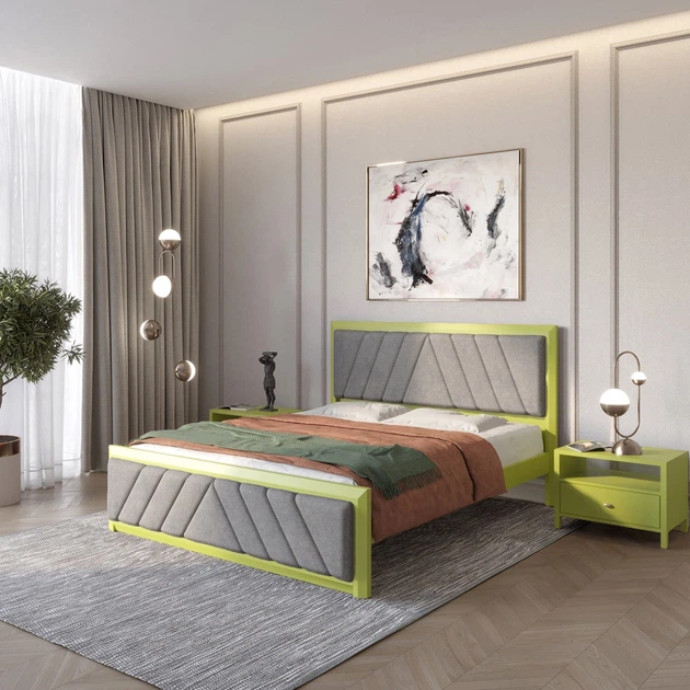 Полуторне дерев'яне ліжко Mebigrand Барселона Б4 Лайм (S3050G70Y)/Аляска 93 (Сірий) 120х190 см (MBG-14068)