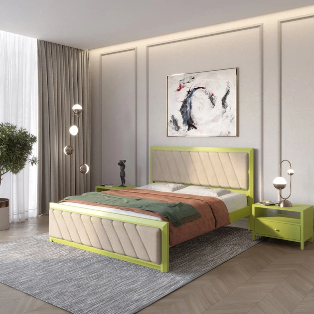 Полуторне дерев'яне ліжко Mebigrand Барселона Б6 Лайм (S3050G70Y)/Аляска 23 (Бежевий) 120х190 см (MBG-13420)