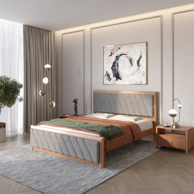 Полуторне дерев'яне ліжко Mebigrand Барселона Б6 Коричневий (RAL8025)/Аляска 93 (Сірий) 120х190 см (MBG-14416)