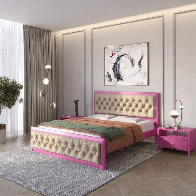 Полуторне дерев'яне ліжко Mebigrand Барселона Б3 Рожевий (S2060R30B)/Аляска 23 (Бежевий) 120х190 см (MBG-12760)