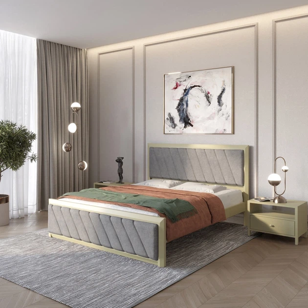 Полуторне дерев'яне ліжко Mebigrand Барселона Б4 Оливковий (RAL1020)/Аляска 93 (Сірий) 120х190 см (MBG-13972)