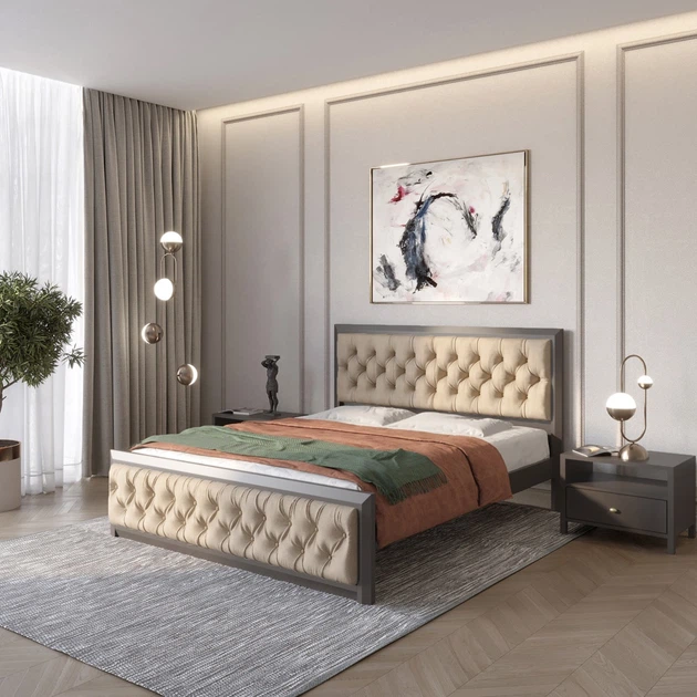 Полуторне дерев'яне ліжко Mebigrand Барселона Б6 Графітовий (RAL9011)/Аляска 23 (Бежевий) 120х190 см (MBG-13360)