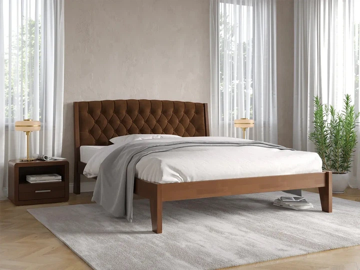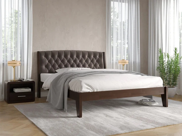 Ліжко двоспальне в спальню з натурального дерева сосна 180х200 Алекс Арбор Древ Темний горіх