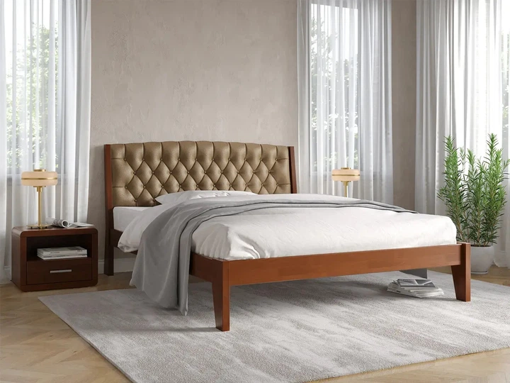 Ліжко двоспальне в спальню з натурального дерева сосна 180х200 Алекс Арбор Древ Горіх