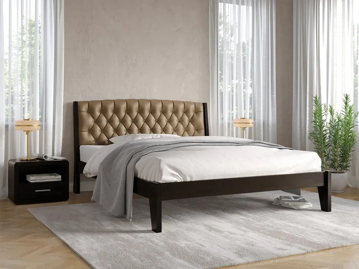 Ліжко двоспальне в спальню з натурального дерева сосна 180х200 Алекс Арбор Древ Венге