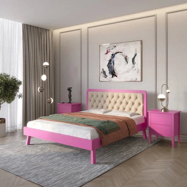 Двоспальне дерев'яне ліжко Mebigrand Токіо Рожевий (S2060R30B)/Аляска 23 (Бежевий) 180х200 см (MBG-4737)