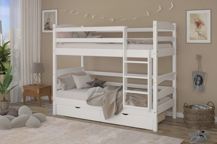 Ліжко двоярусне 80х200 Чикаго Міні MebiGrand Білий (натуральне дерево) (з ламелями/з ящиками/без матраца)