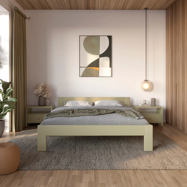 Односпальне дерев'яне ліжко Mebigrand Делі Оливковий (RAL1020) 90х200 см (MBG-4011)