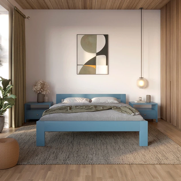 Односпальне дерев'яне ліжко Mebigrand Делі Сіро-синій (S7010R90B) 90х200 см (MBG-3941)