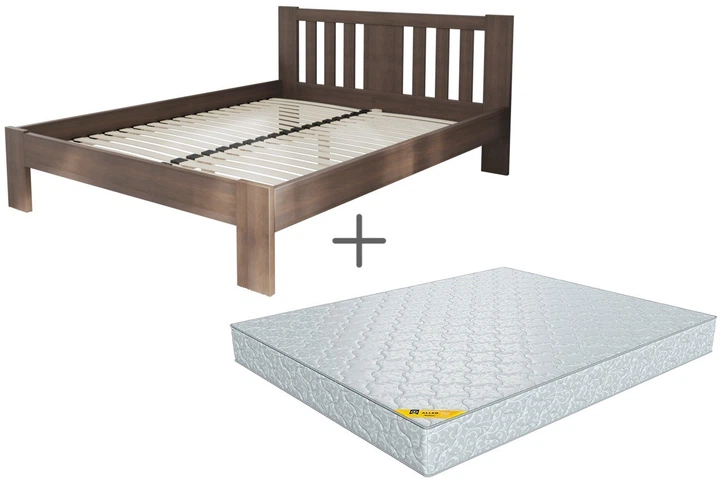 Комплект MNGER Терина + матрац Aller з клена, 90x200, без підйомного механізму, 4,5 см між ламелями, колір горіх темний лак