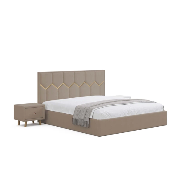 Ліжко двоспальне з підйомним механізмом 160x200 Mirali Beige Viorina-Deko Бежевий (букові ламелі/без матраца) (ЛДСП/тканина