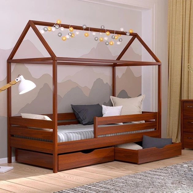 Ліжко двоярусне з натурального дерева Адель Дуо 80х200 з бортиком та ящиками горіх темний Luna (без матраца)