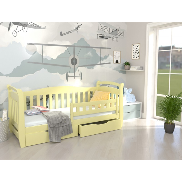 Ліжко односпальне в дитячу з натурального дерева 90х190 з бортиком та ящиками (без матраца) ТМ ЛУНА Домінік слонова кістка