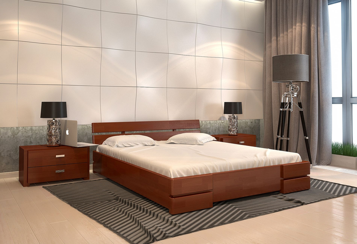 Двоспальне дерев'яне ліжко Mebigrand Тоскана Люкс (підйомний механізм) Горіх лісовий 160х200 см (MBG-2985)