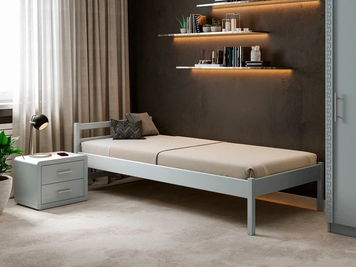 Односпальне дерев'яне ліжко Mebigrand Новара Світло-сірий (RAL-7040) 90х200 см (MBG-4115)