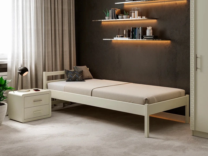 Односпальне дерев'яне ліжко Mebigrand Новара Бежевий (S2005Y50R) 90х200 см (MBG-4052)