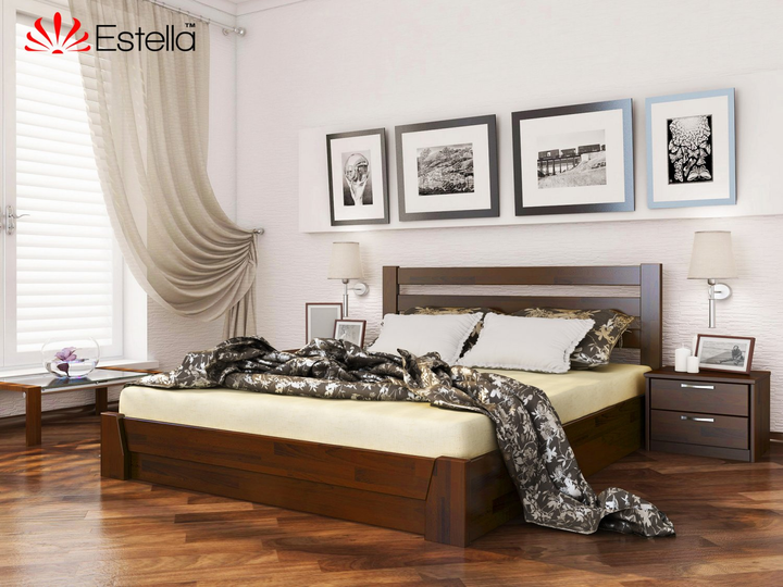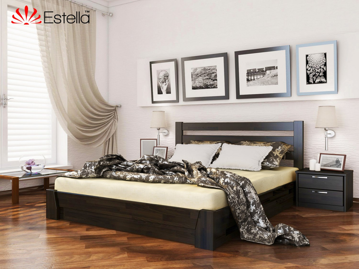 Ліжко двоспальне 160х200 дерев'яна Estella Селену Горіх Темний (Щит-101) Л4