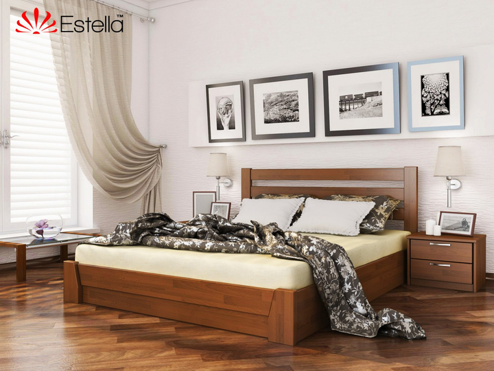 Ліжко двоспальне 160х190 дерев'яна Estella Селену Горіх Світлий (Щит-103) Л4