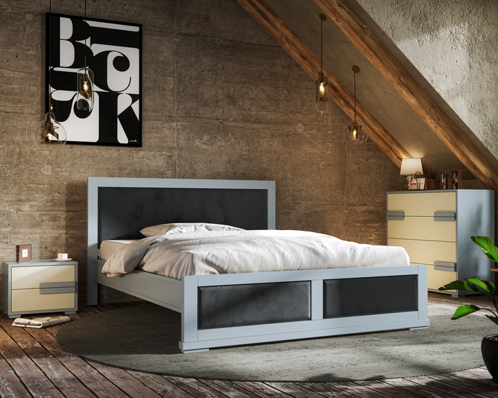Ліжко двоспальне 160х200 з основою без матраца Тренд Арбор Дерево Сірий/Графітовий (натуральне дерево бук/тканина велюр Лагу