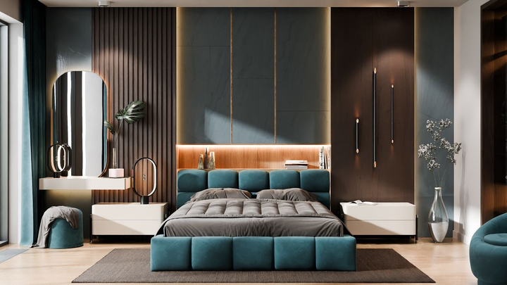Ліжко двоспальне з м'яким узголів'ям без матраца 160x200 Ванесса 1 Світ Меблів з металевим каркасом Зелений (ДСП/Тканина Вел